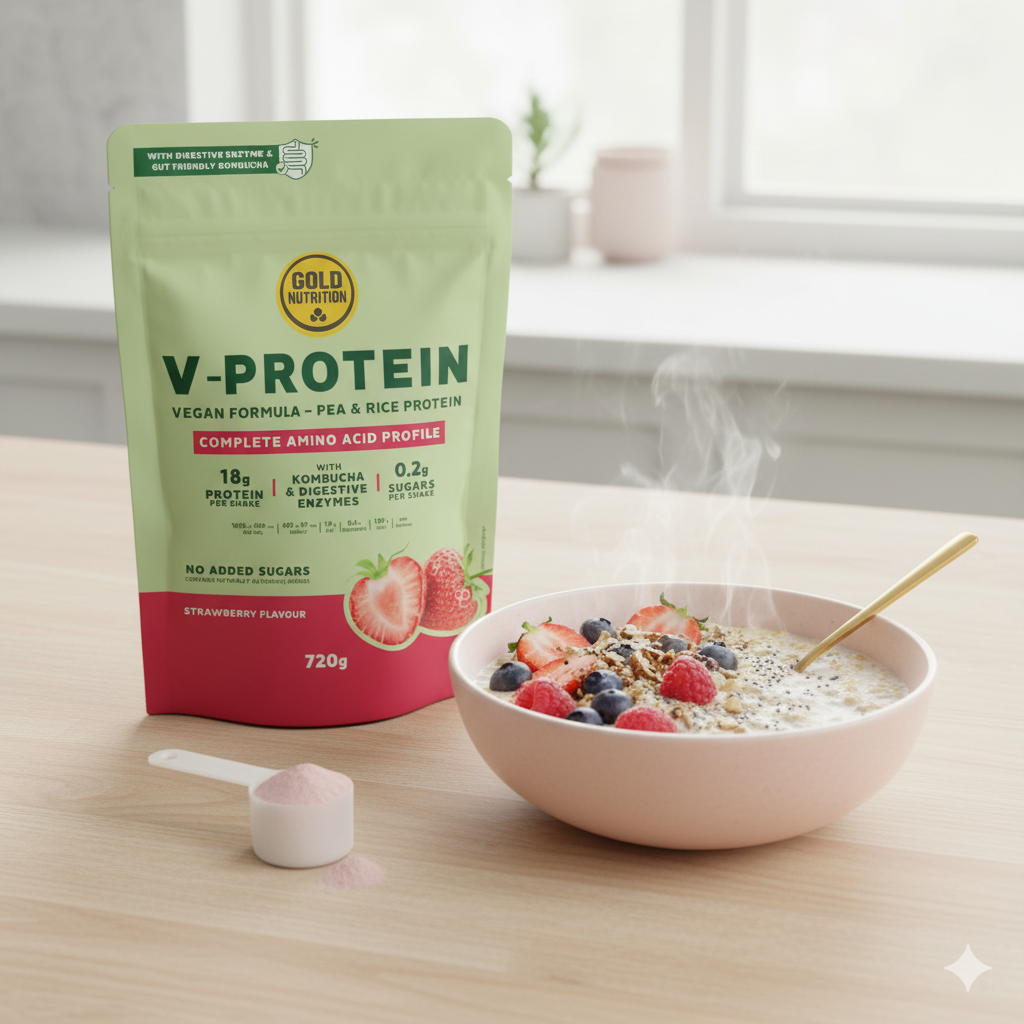 V-Protein GoldNutrition® redefines the concept of plant-based supplementation. A formula has been created that is not only rich in protein (72-78%), but also guarantees a complete amino acid profile by combining pea and rice protein. This synergy ensures that the body receives all the necessary building blocks for maintaining and growing muscle mass.