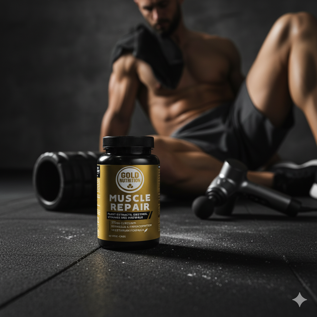 Muscle Repair GoldNutrition® é um suplemento inovador, desenhado para auxiliar na recuperação de lesões nos tecidos moles (músculos, tendões, ligamentos). A sua fórmula baseia-se numa combinação de extratos vegetais com potentes propriedades anti-inflamatórias: Curcuma (com 95% de curcumina), Boswellia serrata e Harpagófito.