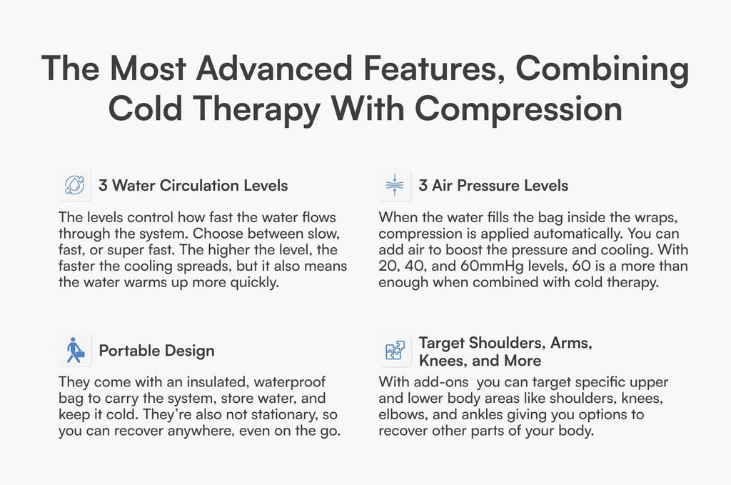 - Revolutionary combination of active cold therapy plus automatic air compression